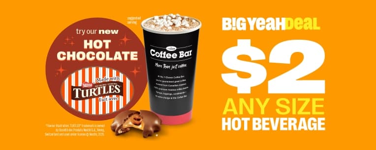Try the NEW TURTLES® Hot Chocolate, only for a limited time at 7-Eleven.
