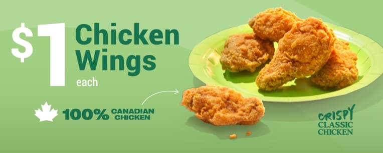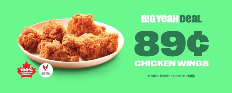 Try our 100% Canadian Chicken wings for a sweet price, only at 7-Eleven.