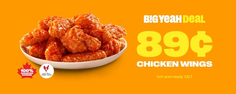 Try our 100% Canadian wings for a sweet price, hot from the oven in 5 minutes.